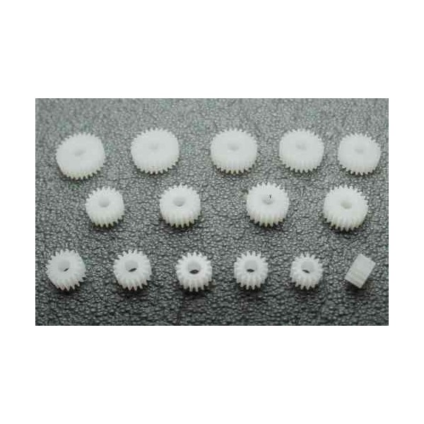 Přesná odvalovaná delrinová kola s modulem 0,2mm na osu 1,5mm. Šířka kola 2mm.